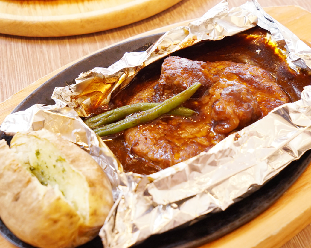 1,199円 (税込)シチューソースで煮込んだとろとろのビーフと、⾁の旨味がギュッと凝縮されたハンバーグからはたっぷりの⾁汁が溢れ出します。