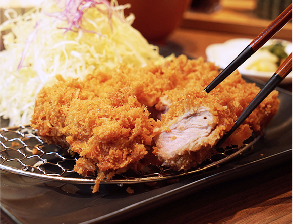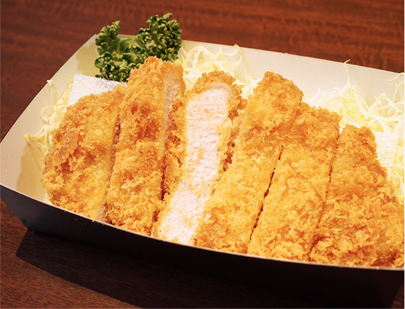 サクッとした⾐に包まれた⾁から旨味が溢れ出します。