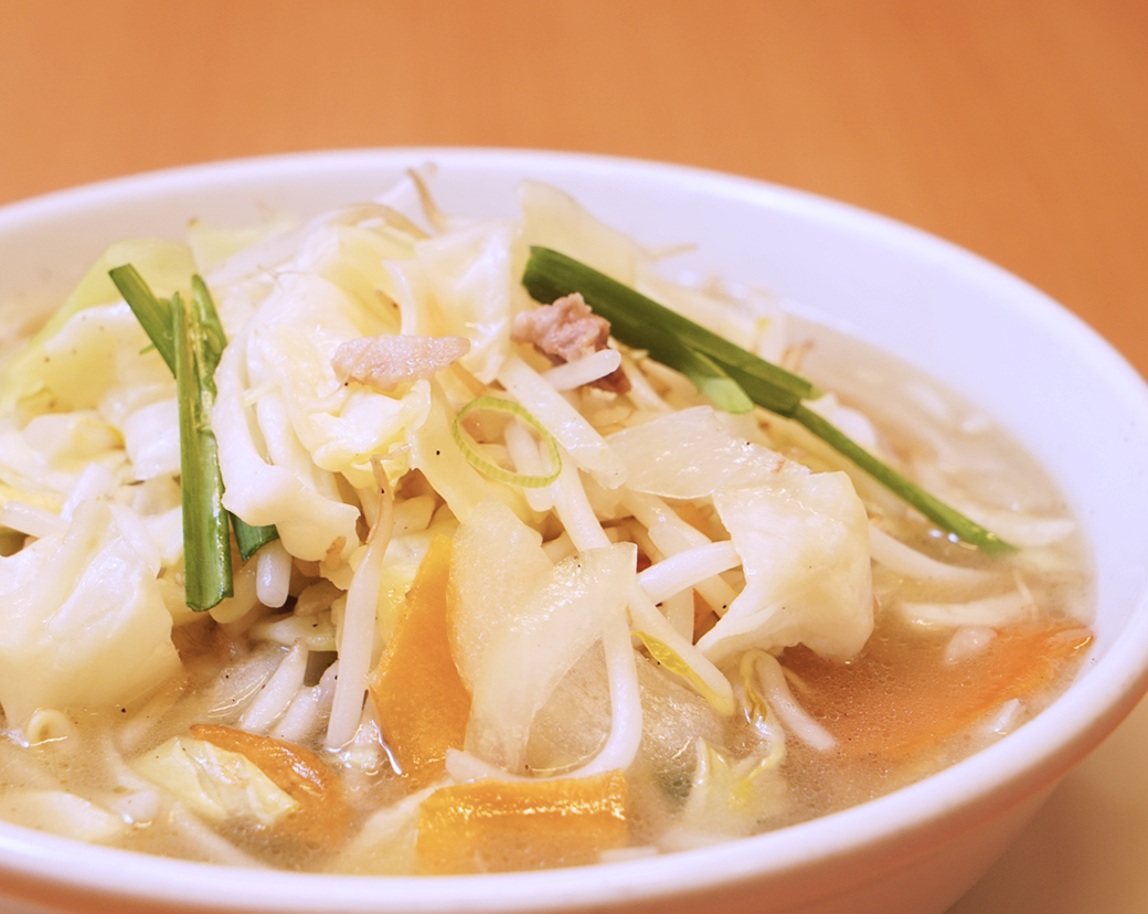 620円 (税込)1⽇の摂取量の⽬安の350gの野菜が摂れるタンメンは、⼿軽に野菜不⾜を補えるメニュー。