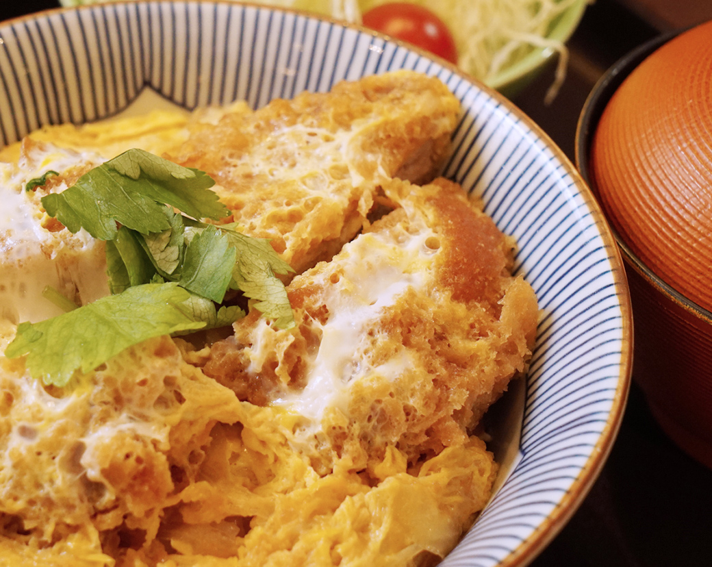 旨味をたっぷり含んで揚げたひれかつを卵で優しく包んだ丼ぶりです。