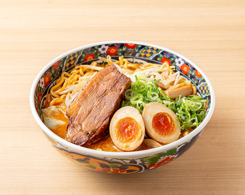100gを超える大きな角煮がのった看板メニューの「旨とろ角煮味噌らーめん」をはじめ、オリジナルの五穀みそタレをふんだんに使った濃厚味噌らーめん、肉汁焼餃子、でっから揚げ、名物煮込み等をご用意しております。