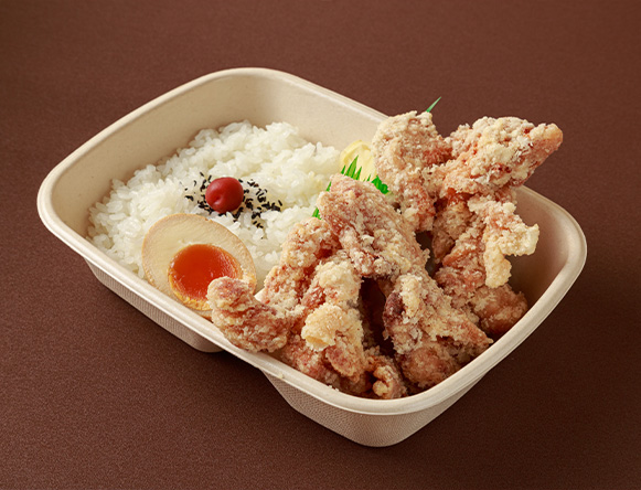 1つ50gを超える自慢のでっから!お弁当には大きなでっからが3つも入っています!ご飯は大盛り無料!満腹になるひと品です。